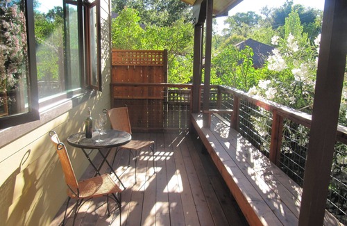 You can BBQ and dine on the spacious deck, relax on the comfortable chairs and couches by the gas fire table. Enjoy the flush deck spa pool with a waterfall, mood lights and bar table with stools. While looking at the big night sky and you can listen to the flowing creek as you soak and enjoy a water jet massage. In the garden a pergola surrounded by lush plantings provides another comfortable seating area and hammock ready to lull you into a peaceful siesta. Lounge chairs sitting on the "beach" offer views of the peaceful flowing creek , wandering deer and exotic birds in the expansive tree canopy.