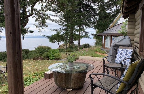 This charming waterfront log home (steps away from Lantzville's most beautiful beach) has everything you'll need for a restful winter vacation! Enjoy awe-inspiring sunsets while soaking in your oceanfront hot-tub, long beach walks where you'll see soaring eagles and incredible ocean views, cozy evenings cuddled up by the magical woodstove. Cedarsong Cabin is tastefully decorated and fully equipped with everything you'll need for a weekend or longer term stay. You will love this place and will not want to leave!