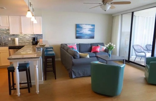 Perfect ocean viewing height on the 9th floor with ADDITIONAL private bayside facing balcony for beautiful sunsets. 2 BR, 2 BA, sleeps 6