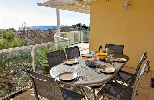 You can enjoy a large garden spanning 700 square meters, complete with terrace furniture and a barbecue area. The property offers stunning views of the sea and the swimming pool. Additional facilities include a washing machine, hair dryer, and complimentary Wi-Fi internet access. Reserved parking within a fenced area is available for your convenience. Please note that the property is equipped with a smoke alarm, and the barbecue is located indoors in the kitchen. A fiber optic connection is also available. Access to the front of the house and the swimming pool requires navigating stair steps, while full access is possible at the rear of the house, on the kitchen side. The interior of the house is designed on a single level for your convenience during your vacation stay.