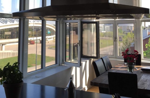 Gorgeous corner unit on top floor of immaculate building, makes this unusual loft a great Montreal residence. New Spa bathroom (2018) with grey marble tiles, rain shower and hand held with French laquered double sinks and vanity. 14 foot ceilings and huge windows provides a stunning view of the Olympic Stadium from each of the 13 full story windows. It's like having the Eiffel Tower in your living room. New luxury spa bathroom. Across the street from 2 metros with a 5 theatre Cineplex a short walk . A cook's dream with the stainless steel dishwasher, fridge and cupboards, white china. Bathroom features stainless rain shower, new tub and hand shower + new ceramic double sink on floating laquered vanity. Top floor unit features 2 story skylight in the bathroom. Partially furnished. Luxury, king bed is top of the line foam and pocket coil, less than a year old. Nice linens and towels as well as king bedspread. Big screen TV. New stainless laundry appliances. Extremely quiet building with new sound proof windows. Elevator, air conditioning. Easy access to downtown. One parking space. Bixi stand across the street with lots of bike paths connected to downtown. Montreal's most beautiful park and the botanical gardens across the street behind the spine of the stadium. 3 Gyms, including Montreal's largest as well as Olympic stadium state of the art gym are all within a block. The latter has 2 new olympic size pools. Coveted address in cool area, best market of Montreal a short walk and lots of gourmet restaurants, banks and bakeries a few blocks south. First Friday of every month features 80 gourmet food trucks across the street post pandemic. Includes outdoor parking space right at the door and internet and wifi.