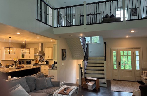 Escape to this beautifully appointed executive home just 10 minutes from Saratoga Race Track, Saratoga Lake, and downtown shopping and dining. Set on 15 acres of peaceful, private land, this spacious retreat offers the perfect balance of luxury, convenience, and seclusion. Ideal for travelers seeking comfort, style, and close proximity to everything Saratoga has to offer. Enjoy every inch of this luxurious house with big screen TV’s in every room, central AC, Gourmet kitchen, and incredible great room!!! walk down the road to the Kayak shop for food, boat rentals, and water access to Saratoga Lake! Visit historic Saratoga Racetrack for the Day! Shop and Dine downtown at over 100 restaurants , shops, and boutiques! Then come home to your private Oasis and enjoy the space together in the stunning great room seated at an amazing River Table! Or head outside to share stories by the fire pit while making smores!