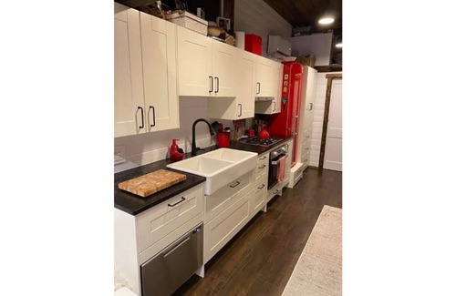 The whole space is yours; with a beautiful blue tile shower, dark wooden floors, granite counter tops, washer and dryer, King size bed in the master loft. Fully functioning kitchen with a gas oven and gas stove. There is also a couch in the living room that pulls into a double bed. This house comfortably accommodates 2-4 people. Pets are welcome. The kitchen table opens up allowing more space. The coffee table opens up as well. There is NO TV please bring your own devices or enjoy screen free time! High Speed Wifi.