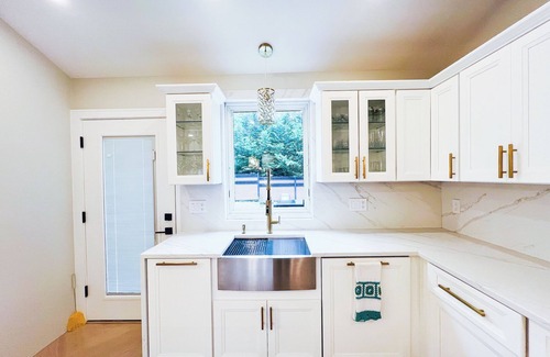 Step outside to unwind by the brand-new heated, saltwater pool and enjoy the serenity and privacy of the beautifully landscaped yard — perfect for sunny afternoons with barbecue and evening cocktails at the bar&grill area. An outdoor shower added for convenience.