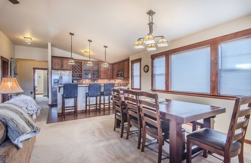 Welcome to this delightful condo, where you can unwind and embrace the serene mountain retreat experience. The primary bedroom offers a queen bed, a private balcony, and an en-suite bathroom with a large glass shower, ensuring comfort and relaxation. The guest bedroom features a twin over queen log bunk bed, while the living room comes with a sleeper sofa and a full hall bath, providing ample space for up to 7 guests. The condo's oversized living area creates a wonderfully comfortable and spacious atmosphere, allowing you to immerse yourself in the beauty of the mountains.
