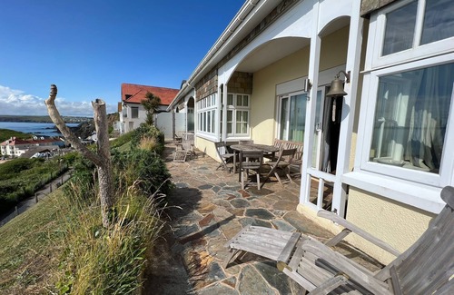 The Old Colonial House originally built in the 1920s is set in a dramatic position facing due west across Hope Cove, the beach and Bigbury Bay. Starboard has stunning uninterrupted views from all the rooms, it has a large 50 foot+ private terrace which offers spectacular views of the sunset. The property nestles between the twin villages of Inner & Outer Hope on the South West Coastal Path. You will find us just below St. Clements, the 16th Century Fisherman's Chapel. Starboard is a fabulous Hope Cove accommodation recently refurbished and featuring breathtaking panoramic views of the coastline, stretching far beyond Burgh Island and along the South Devon coast. A perfect seaside holiday destination, just a minutes walk from one of Devon's most beautiful secluded sandy beaches.