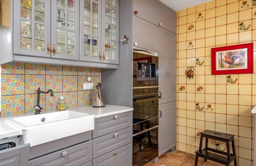 From the kitchen you come out to the lovely backyard with private pool, comfortable outdoor furniture, a solid relaxation corner under the greenery where the most memorable dinners will be enjoyed.There is also a built-in charcoal grill, ask Frank about his favorites to grill if you want the best that Spain has to offer!