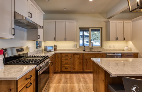 Guests will enjoy a sun-filled great room with cathedral ceilings and an open floor plan. Complete with a state-of-the-art gourmet kitchen, lake view dining room, and a ten-person dining table - perfect for family-style dinners.