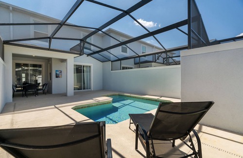 Welcome to this beautifully designed 4-bedroom townhome, thoughtfully arranged to host up to 11 guests comfortably. The spacious open-concept living area flows into a fully equipped kitchen, making it perfect for shared meals and relaxation. Step outside to enjoy a private, heatable pool, ideal for soaking up the sun.