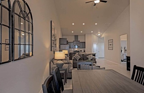 Enjoy some down time and have fun with friends or family in this beautifully furnished townhome located just minutes from the spectacular Snake River canyon and only an hour away from world class ski resorts. The stunning interior design is perfect for your relaxing getaway! This three bedroom, two bathroom home is stocked full of delightful indulgences and amenities, making it the ideal spot for you to explore Twin Falls and the surrounding area. Unwind in this spacious home with awe-inspiring vaulted ceilings that bring the kitchen, dining and living rooms together. The complete kitchen has all of the essential cooking items to prepare your favorite dishes. Other kitchen amenities include refrigerator, oven, dishwasher, microwave, spices and abundant cupboard space and countertops. The primary bedroom suite boasts a king size bed with walk-in closet, dual vanities and direct access to the covered patio where you can enjoy an early morning cup of coffee. The patio is also equipped for a summer BBQ with a grill and furniture to relax. The second bedroom includes a Queen size bed and the 3rd bedroom is equipped with two twin size beds. All of the bedrooms include smart TVs. Also on-site is laundry and a 2-car garage with additional parking outside the garage. Guests have access to the entire home and garage. A quiet neighborhood of new homes. You're within minutes of award-winning dining options, shopping, hospital and entertainment options. Within a 4 mile radius of the downtown Twin Falls area, many restaurants and shopping centers, parks, golf courses, hiking trails/walking paths, Sunway Soccer Complex, schools, colleges, and much more. The easiest way to get around is by car. There are taxis and rideshare services available. Walking and biking is easy as many of the roads are without inclines.