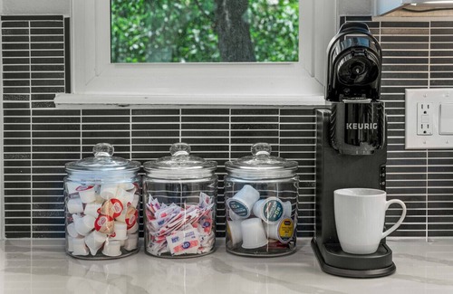 Whether you’re cooking up something delicious or just brewing a morning cup of coffee, the fully equipped kitchen has everything you need—from sleek appliances to all the cooking tools and dishes.