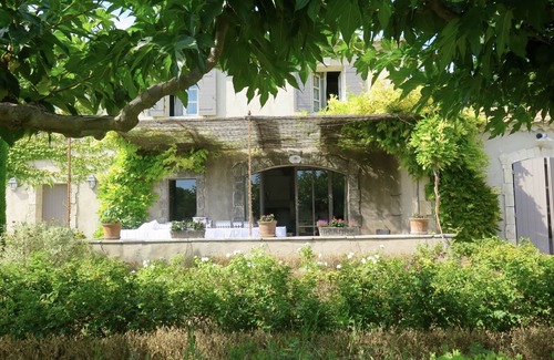 Mas des Anges. Partially covered in Virginia creeper, grey wooden shutters, plantain trees to the fore , a wisteria covered pergola and a large gravel drive leading to the house., this is our home. Fully airconditioned throughout, we have 5 big double bedrooms and 5 bathrooms in a country house with very beautiful large gardens, an enormous fully heated swimming pool with magnesium not chlorine and not at all overlooked - it is stunning. The views are unparalleled.- the hills, olive trees and wild shrubs -completely quiet and tranquil. The old stone house ( dated 1820 ) is extremely comfortable and well appointed.It has been completely renovated to a very high standard with solid polished plaster floors set with oak strips, solid oak doors and huge french doors opening out to the various terraces and gardens.It has been maintained and decorated to a very high standard with big linen sofas a large wooden library with huge selection of books and,dvds . There is a large stone fireplace with wood burning stove and coffee table with books and candles. The Wifi throughout the house is good . There is a large 1600cm QHD Samsung television which receives both English and French channels Netflix and Apple tv for additional films.Sonos plays music via the wifi The kitchen is extremely well equipped with a large electric oven ,gas hob with 6 burners, microwave , magimix good quality pans, lots of utensils and very nice quality crockery and cutlery. The kitchen is open plan to the inside dining room with an oak table and chairs for 8 people though in the summer the door from the kitchen is to the west facing terrace near the pool where there is a large marble table under a shady pergola which has seating for up to 12. The stone swimming pool is 6m x 15m with stone steps at the shallow end surrounded by stone terraces with pots of tumbling flowers . There is a pool house with pizza oven and tools including a pizza paddle, a large gas barbecue lounge beds etc. Next to this is an additional room for changing with 2 loos and assorted toys , blow up lilos etc for the pool . The garden is 3 acres of mature trees, shrubs and fragrant flowers. There is a large lawn borded by cypress trees, hedges and secure by electric gates. so the garden is completely enclosed making it safe for children but the views are not hindered so the wonderful hills and fields can be seen. Clients all comment how a house with such amazing chic typically French interior design can be so very comfortable and relaxing.Its a super house for children as very safe and spacious.but equally good for a group of adults as it is luxurious and comfortable and the communal spaces work very well providing lots of space for entertaining .All bedrooms are enormous, beds are super king size 230 x210 so no one gets a small poky room.The master bedroom has a cot if required and changing station for baby and bouncy chair. Every bedroom has either an ensuite bathroom with bathtub toilet and double wash basins or a walk in shower room with large rain shower heads , a separate toilet and wash basins Toiletries and loo paper are provided to start you off and every room has a hairdryer. All rooms have large wardrobes, mirrors, chests of drawers and room fans and the upper rooms have air conditioning .All bedlinen is good quality 100% cotton and all towels are provided with separate towels for the pool.the utility room has a large overflow fridge and freezer, washing machine and tumble dryer. The house has air-conditioning in the whole house the hot summer we have just experienced we will be installing additional air conditioning in all bedrooms and living area for 2019 . The house has thick stone walls and shutters on the windows. Old French houses were very well designed to keep the fierce sun out in July and August and the mistral out in the winter ! This is a wonderful house Ideal for a large family or two families sharing with children as lots of room to be private or together . There is lots of outside seating with comfortable cushions, sunbeds, parasols, additional tables and really superb views over the Alpilles regarded as an area of outstanding natural beauty.The garden is beautifully planted with olive grove, fruit trees, fragrant white roses, a field of lavender and mature shrubs. Very peaceful location but easily accessible either walking to the nearest village of Paradou or car( 5 minutes ) to great restaurants, bustling markets and chic shops in Maussane One of the best bistros in Provence is Bistrot du Paradou which is 5 minutes drive away . Excellent golf course in Maussane. Horse riding in Paradou , fishing in nearby lake at St Remy.Popular with cyclists walkers and lovers of good food and wine. Vineyards for tasting visits many restaurants and bistros. Many festivals throughout the summer and wonderful food and bric a brac markets weekly in the village and nearby St Remy and Arles . This is the Provence that people dream about- quintessential , charming chic and authentic- a world away from glitz and excess ! The house epitomises this ethos and is loved by all that fall under its spell