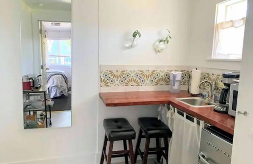 This remodeled, adorable, private, pet-friendly studio apartment features a comfortable king-sized bed and kitchenette and is well located in the heart of downtown Arcata steps away from shops, pubs, restaurants, and attractions. The apartment is two blocks from the Arcata Plaza and Creamery District, near the North Coast Co-Op grocery store, and walking distance to the Arcata Marsh, Crabs Baseball, the Arcata Community Pool and Community Forest, Cal Poly Humboldt, and great cafes. This private studio has its own entrance and yard and shares one well insulated wall with our main 4-bedroom house. This is the perfect home for exploring redwood forests, beaches, and local culture. Book your stay today and experience the best this charming college town has to offer!