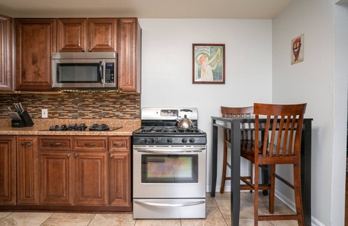 The kitchen is also quite spacious and is stocked with cookware and utensils. Feel free to use the refrigerator when you bring home food from ATL's amazing restaurant scene. We also have tea and a Kcup and drip coffee maker with stocked coffee and creamers for you to enjoy.