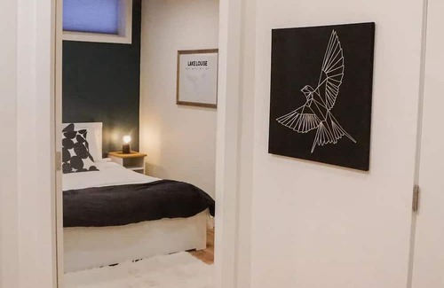 This spacious, architect-designed basement suite is perfect for up to 4 guests. The inviting living area features a dining table, media area, sectional couch that doubles as a sofa bed, and full galley kitchen. The bathroom is finished with premium materials, and features a fully tiled shower. The cozy bedroom features a comfy memory foam mattress, curated bedding and decor, along with a full closet for clothing, luggage and gear storage.