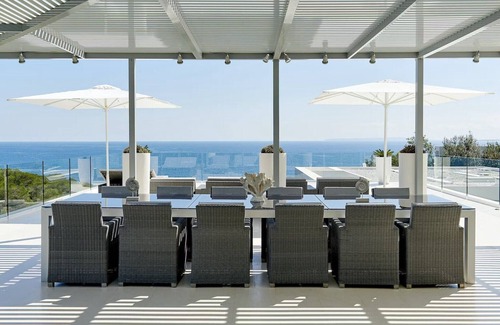 This amazing villa offers an unbeatable location with sweeping views of the deep blue Mediterranean Sea, the romantic silhouette of Dalt Vila, and the rugged hills of Formentera. Located just minutes from Ibiza Town, this stylish villa features a 10m x 5m saltwater pool, sunloungers, and a shaded al-fresco dining terrace that seats 14, all with panoramic sea views. A summer kitchen and BBQ are available on the poolside terrace, perfect for enjoying the outdoors. For a more private experience, an upper terrace with additional dining space and lounge seating offers the same spectacular vistas. Inside, the open-plan living area is bright and airy, with clean lines, comfortable pale sofas, and modern technology. The well-equipped kitchen features neutral woods and marble countertops, seamlessly connecting to the outdoor dining space. The villa’s lower level features a cozy den with a home cinema system and a small gym. The six spacious, en-suite bedrooms all offer king-size beds, with the master suite opening directly onto a private sun terrace. Every bedroom, except one, has stunning sea views. Just 10 minutes from Ibiza Town and close to the golden sands of Playa Talamanca, Villa Martinet is a tranquil retreat in a residential area, with a strict noise policy for peaceful stays. The villa is also family-friendly, offering toys, cots, and highchairs for younger guests. Extra cost: Should the services of the Breakfast/Brunch Chef be required, a cash deposit of 1000 euros for groceries is required. All receipts will be provided, and any unspent amount will be returned to the guests at the end of their stay.