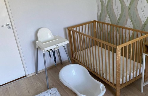 Family friendly. The flat is equipped with baby cot bed, highchair and changing mat.