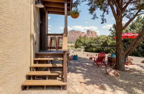 Quiet and secluded guest en-suite located on 1 acre of property in an upscale neighborhood in the Village of Oak Creek, Sedona. The Suite is attached to the main part of the house with pvt entrance/pvt bath. Separated and secured by two locked doors. Private parking with keyless entry. No shared spaces.