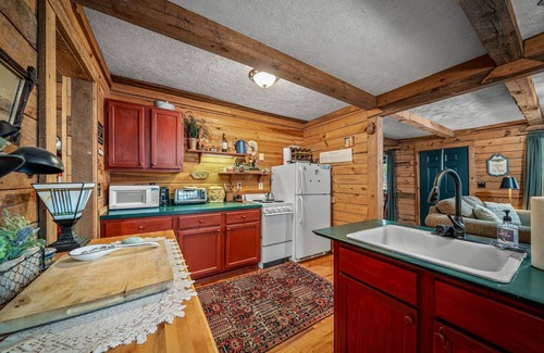 The heart of Suite Retreat is its open living/dining area/kitchen, perfect for sharing a movie night with popcorn or meals and laughter over a home-cooked dinner. For those who love to grill, our charcoal grill offers the perfect opportunity to whip up a delicious meal amidst the calming backdrop of nature. As an added bonus, enjoy quiet moments in the second living room, where you can lose yourselves in books or enjoy each other's company. As night falls, gather around the enchanting fire pit, where glowing flames flicker and crackle, inviting heartfelt conversations under a starlit sky. And when it’s time to truly unwind, slip into the soothing hot tub, where the warm water envelops you, easing away any stresses and allowing you to savor the peaceful surroundings from the privacy of the screened porch.
