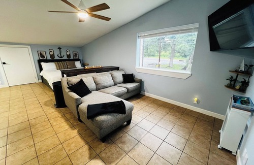 Cozy upstairs studio in the heart of Sattler—across from Wildflour Café, minutes from the river, Canyon Lake, and Whitewater Amphitheater.