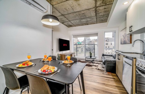 Come and enjoy an unforgettable stay in the heart of the Saint-Roch district in Quebec City. This modern and luxurious condo will charm you with its common areas and its interior design.