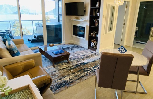 Cat's Meow Retreat is a private and self-contained modern style suite inside of a 3 storey house located within 30 min walking distance of the Langdale Ferry Terminal. In the lovely town of Gibsons on the Sunshine Coast of BC, it is only a 40 min ferry ride from West Vancouver. Along with fantastic views of Howe Sound it offers many great features such as hot tub for your private use (available from October 1 to May 31 only), electric fireplace, electric car charger, keyless entry and much more.