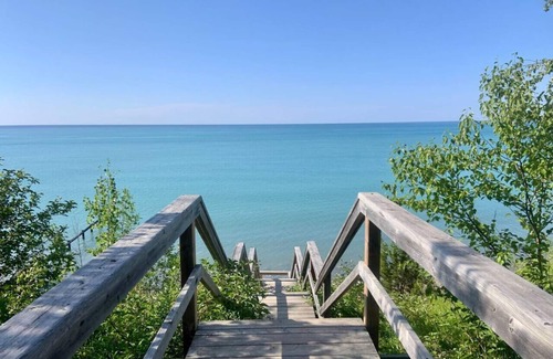 Two of the three bedrooms and one shower window have breathtaking Lake Huron views. Imagine waking up and from the comfort of your bed or shower, having as company the sights and tunes of the vast Lake Huron, strolling down the street and public stair case a few minutes to walk on the beach.