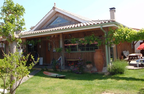 fully equipped kitchen (dishwasher, coffee maker, oven, kettle, microwave, fridge, freezer, toaster, washing machine ...) 2 bedroom 10m square one with bed 140 and 160, dressing room, bathroom, toilet, television, wi fi, large living room with open kitchen very bright, and mezzanine, and a separate bungalow with bedroom bed 140 and WC plus bathroom with outdoor kitchen, pleasant terrace 70 m south facing grating (large umbrella) garden furniture, deckchair , garden shade barbecue area, parking place, storage for surfing and bicycles and beach. pets not allowed, no smoking allowed in the house