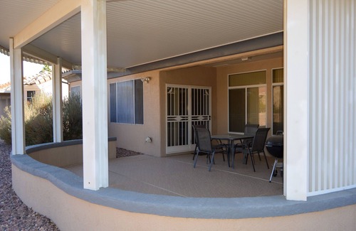 You've ARRIVED in Sun City West! Get ready to enjoy what this 2-bedroom house has to offer. Primary bedroom features an adjustable sleep number bed for your comfort, Flat Screen TV's and Sound bar, WiFi, washer/dryer, AC, heating, and an iron board. Conveniently stocked kitchen, expanded covered patio with table, chairs, BBQ, linens and towels, guests will have everything they need for a comfortable stay. The bathrooms are equipped with showers and a hair dryer for added convenience. Our place is equipped for both long or short stays to make your holiday one to remember.
