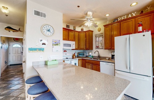 Sea-Love is a comfortable, two-bedroom, top-floor condo located in the exclusive Durant Station Condominiums. Complete with a private oceanfront deck, direct beach access, and unparalleled views combined with all the comforts of home including, a well-equipped kitchen, comfy furnishings, a primary suite with king bed, private bath, and deck access, Satellite HDTV with DVR. Sea-Love is sure to steal your heart. The Durant Station Condominiums offer spectacular ocean views from every property. All condos have private oceanfront decks, as well as sound side decks for viewing colorful sunsets. Elevator service to all levels makes Durant Station a most convenient choice for all ages: no need to haul luggage and groceries up long flights of stairs!