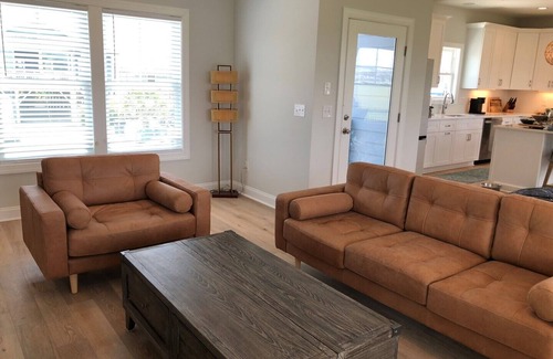 Stay in this beautiful boutique style rental with amazing views of the Marsh, Ocean, and Sunsets! This open floor plan home is perfect for couples or small families. Cook up a gourmet meal in the brand new kitchen using fresh herbs from the outside deck or have a drink from the beverage center. Both bedrooms in this home are complete with their own private bath and ceiling fan. Sit and relax on the back deck while enjoying the fabulous views or take advantage of the free beach gear and enjoy all that Holden Beach has to offer.