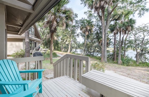 A gorgeous palm tree view is waiting for you and your family on Dataw Island. Sleeping six, Creekside Escape is a two-bedroom, two-bathroom home, perfectly situated overlooking the marsh and tidal creek. Make it a point to get up early and catch one of the beautiful sunrises. As a special amenity spend your days at Hunting Island State Park with one of the best beaches in the area with a car pass included. Guests can get their beauty rest in one of the two bedrooms: the first located on the main floor features a king-sized bed and the second on the second level has two queen beds.