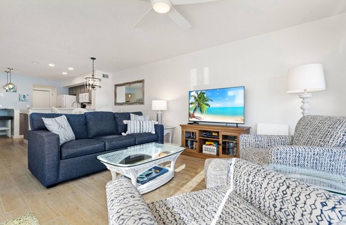 The living room has a brand new sofa sleeper and cozy chairs for kicking back and relaxing in comfort. The living room also has a Smart TV, so remember to bring your Netflix/Amazon Prime/streaming credentials with you on your trip. There is more than enough room for everyone to settle in at "Sun Puppy Point."