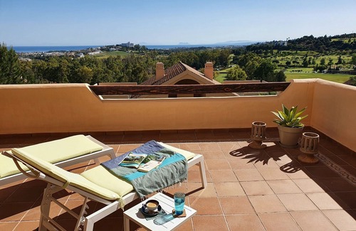 Sunny apartment with large terrace sea and Gibraltar view in luxury golf complex is located in New Golden Mile. Sunny apartment with large terrace sea and Gibraltar view in luxury golf complex provides accommodation, featuring Internet, Laundry, Hot Tub, among other amenities. This Apartment features Internet, Laundry, Hot Tub, to make your stay a comfortable one.