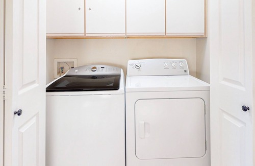 After a day spent in the sun, find yourself lounging on the plush furniture in the spacious living room. Here, you can tune into your ritual morning news or evening movie marathons. When you aren't indulging in the area's local fare - whip up culinary creations in the well-equipped kitchen. Dine at the breakfast bar or the formal dining table. Both of the bedrooms have been lovingly adorned with inviting color palettes, central air-conditioning, and soft linens. Rinse off in one of the walk-in showers before throwing your clothes in the private washer/dryer - ready for a refresh.