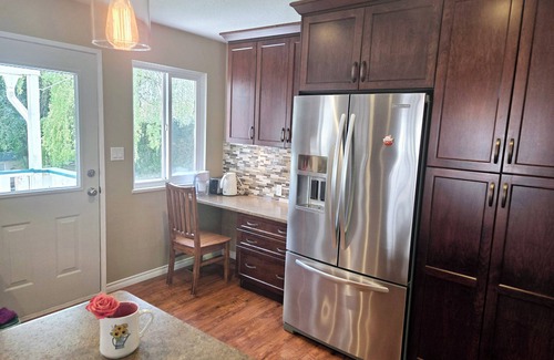 This Langley Township house boasts 6 inviting bedrooms, each with a queen bed. The property also features 3 bathrooms with modern amenities like a hair dryer and shower. In addition, there is a cozy living room with a futon for extra space. Guests can relax in this excellent and enchanting retreat, perfect for a group getaway. Enjoy all that Langley Township has to offer when you stay at our place.