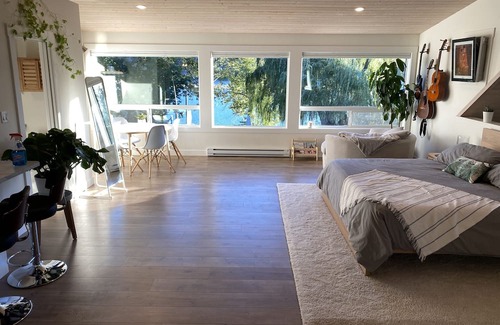 Come relax in our quiet modern studio loft surrounded by greenery and riverfront views. Located in the heart of Kamloops right on the rivers trail. This newly built space is a 4 minute drive to downtown Kamloops and walking distance from local restaurants, breweries and coffee houses. MacArthur park is conveniently one kilometre away for sporting events or recreational activities. Bring your Kayaks or paddle boards and take advantage of the beach access in the backyard!