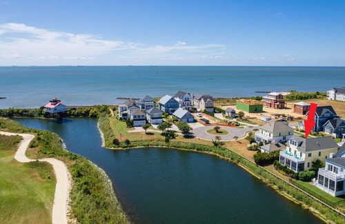 Sunny Side Up is an extraordinary custom built home in the Bayside Village with panoramic views-from the golf course, to the lighthouse, sunsets/sunrise's over the Chesapeake Bay. This beautifully decorated 4 bedroom, 2 full and 2 (1/2) bathroom, home provides you a sense of comfort and tranquility as soon as you walk through the door. The first thing you will notice is the Carlyle heart pine floors, which is throughout the home. The nice open floor layout allows for plenty of space. There is a gourmet, fully equipped kitchen with custom backsplash and an island with more seating space. The relaxing custom bar room is a favorite, with a bar refrigerator and plenty of shelving and seating. The master bedroom has a king bed and a bathroom (equipped with a jacuzzi tub (no jets), walk-in shower, and double sinks), and the two guest bedrooms are on the second floor, one with a king, the other with two twin beds. The master bedroom has second floor balcony access for unforgettable panoramic views, perfect for sipping your morning coffee or orange juice. The third floor has two sleeping areas, a queen bed on one side, and two twins on the other.