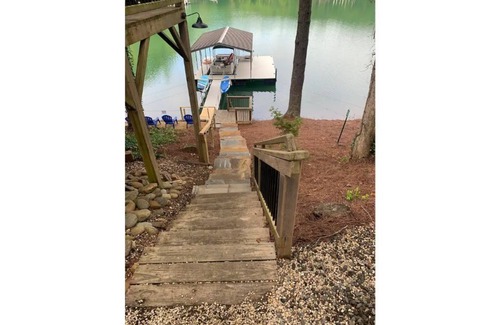 Unfortunately, this house is not accessible by wheelchair. There are steps from the parking pad to access the house which may be difficult for anyone experiencing mobility challenges. Accessing the lake from the house also requires navigating multiple sets of stairs.