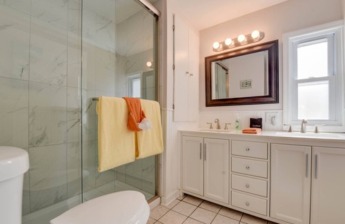 The air-conditioned interior is bright and welcoming, offering rear windows that fill the space with sunlight and views of the ocean. Enjoy polished stainless-steel appliances and gas stove in the updated kitchen. The open floorplan includes a dining room table that's perfect for indoor meals and board games, and a living room with plenty of comfy seating and a 58" smart TV.