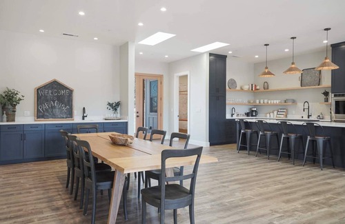 Perched high on the hill, "Sunset House at Paradise Ridge" offers breathtaking views of Sonoma’s vineyards, perfect for watching the sun dip below the horizon. This luxurious 6-bedroom retreat (5 bedrooms in the main house with a 1 bedroom ADU) combines the rustic charm of a barn house with modern, elegant design. Enjoy spacious living areas, a gourmet kitchen, and multiple outdoor spaces, including a private hot tub, BBQ and a fire pit for evening relaxation.