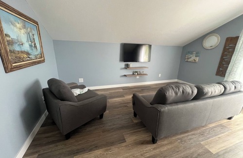 Relax with the whole family at this peaceful place to stay. Located on the Sandusky bay, beautiful sunset views. Sleeps up to 4 people. 2 adults max. Queen size bed in bedroom, sofa chaise sleeper (equivalent to full size bed) and convertible twin size sleeper chair. Full kitchen, washer, dryer, dishwasher. Wifi with smart tvs. Boat ramp and local bar within walking distance, trailer parking available on property. Fire pit, deck with dining seating and gas grill. 24 minute drive to cedar point, 18 minutes to Marblehead lighthouse, 20 minutes to ferries to Kelleys island and Put in Bay, 15 minutes to monsoon lagoon waterpark and petting zoo.