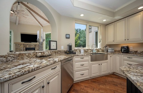 The other three guest rooms boast the same attention to details. With beautiful views and access to spa quality bathrooms, everyone in your group will feel pampered. The designer kitchen with high-end amenities is made to gather and cook with your friends and family. Enjoy meals around the large island or take in the views while you eat in the dining room.