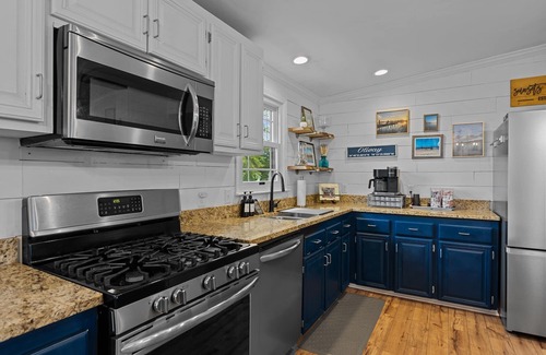 If you love cooking then bring your recipes to cook on this gas stove/oven. There are lots of pots, pans, bowls, and utensils for your cooking enjoyment. There is a gas grill on the main living screened porch (please clean after or there will be an added cleaning fee).