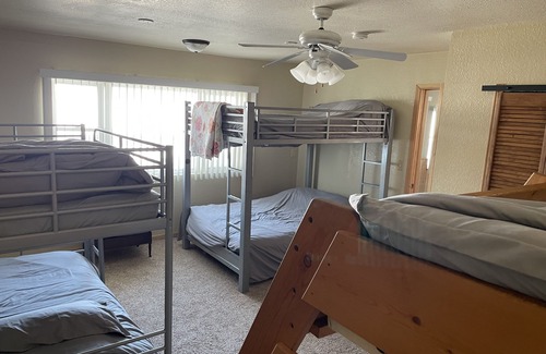 Perfect house for family, friends, fishers, hunters, boaters, snow mobile, ice fishing and more! The master bedroom with a queen bed, room full of bunk beds and numerous amenities, it is sure to please! This open concept ranch, with a newly remodeled kitchen allows you to walk right out to the beach. There is a launch for small boats or jet ski's steps from the house, or public launches for larger boats minutes away. (or in the winter a direct road to the perfect ice fishing spots!) Hours of fun for everyone and features a sunset every night! All the comforts of home with adventures included.