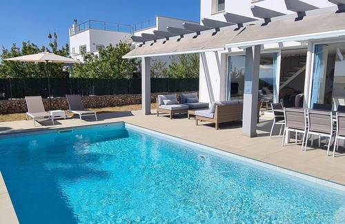 Superb modern villa with swimming pool Magnificent views of Son Bou beach Beaches on foot has 4 Bedrooms , 4 Bathrooms, and max occupancy of 8 people. The minimum rental for this property is 1 nights, but this can change depending on the season you plan on staying. Previous guests have given good rated it, and VRBO labeled it a top-rated House because of the excellent services rendered by the owner or manager of this House, and has consistently provided great experiences for their guests. Most families or guests that use it recommend it to their friends and some of them are repeat guests. House has a friendly neighborhood, and the Sant Jaume Mediterrani has interesting places to visit. If you want to learn more about the House in Sant Jaume Mediterrani, such as places to visit and things to do nearby, you can check below to learn more.