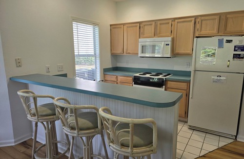 This spacious 1st floor unit has 4 beds (2 queens and 2 fulls) and 2 full baths to comfortably host up to 8 people. No need to carry your golf bag up flights of stairs! It also boasts abundant natural light, fast and reliable WiFi, central AC and heat, a washing machine and dryer, a dishwasher, one full kitchen and one kitchenette, 2 Keurig coffeemakers, 2 blenders, and 3 brand new smart TVs. There is plentiful parking just steps from the front door and a screened-in porch facing the green.