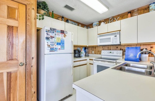 Surfsong is a coastal condo perfect for a family beach escape. Nestled in the Indian Summer Condominium complex, this top-level retreat blends the nostalgic feel of classic hardwood walls with updated decor for a clean and modern beach bungalow vibe. With a queen master bedroom and two twin bedrooms (one with a trundle), this cozy space is ideal for small families seeking comfort and relaxation. The spacious outdoor deck is perfect for al fresco dining or lounging after a day at the beach.