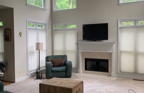 Our home has 3 bedrooms: 2 queen beds, 2 twin beds and a sleeper couch if needed. The upstairs bathroom has a shower and bathtub. The downstairs bathroom has a bathtub only. A full kitchen, breakfast nook, work room, living room, family room and bedroom are located on the first floor. Two bedrooms and a bathroom are located upstairs. The balcony and basement spaces are not available.