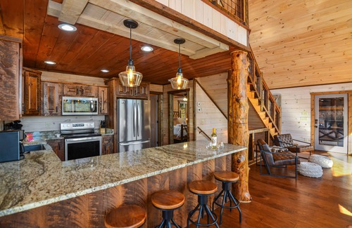 **Revel in the allure of rustic wooden beams and charming barn doors, seamlessly blending traditional cabin aesthetics with contemporary luxury touches.